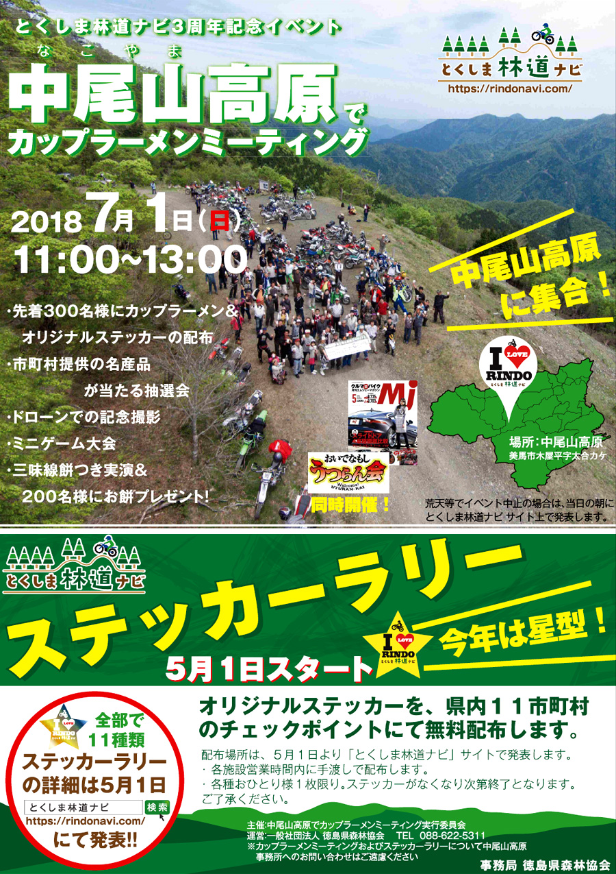 とくしま林道ナビ ステッカーラリー を 2018年5月1日から 開催します。