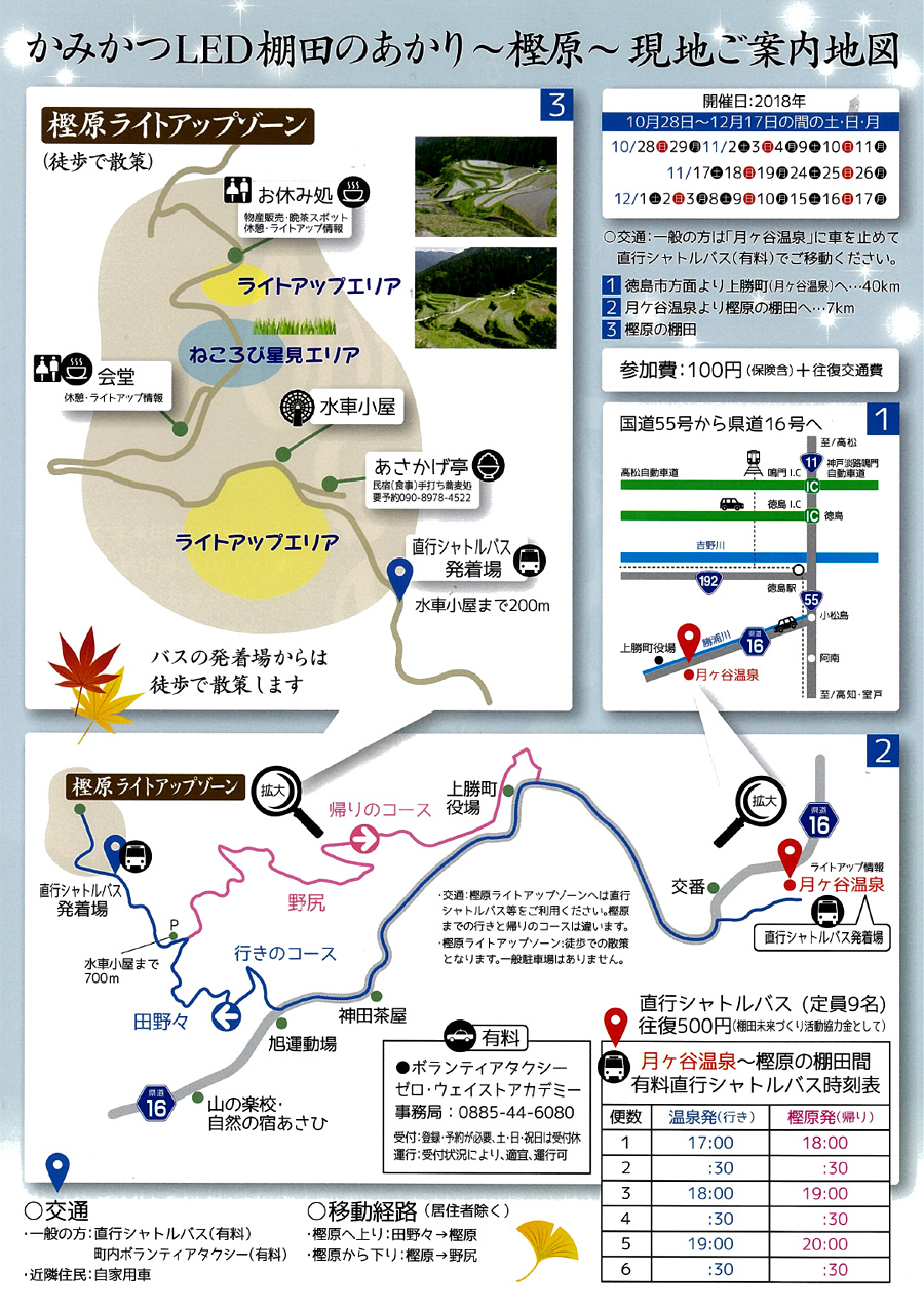ライトアップ観賞 100円 シャトルバス 往復 500円