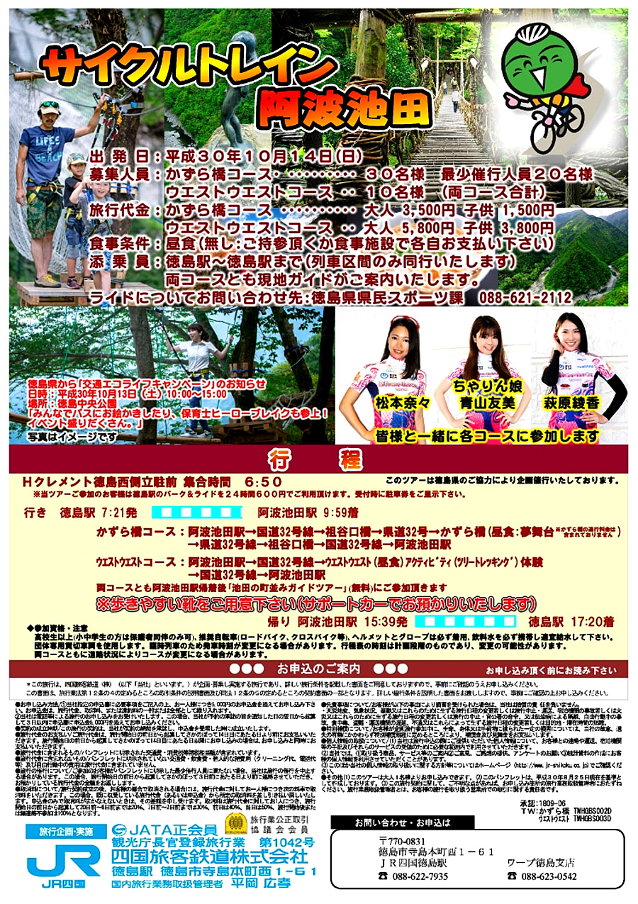 サイクルトレイン阿波池田 日帰り ツアー が 開催されます。