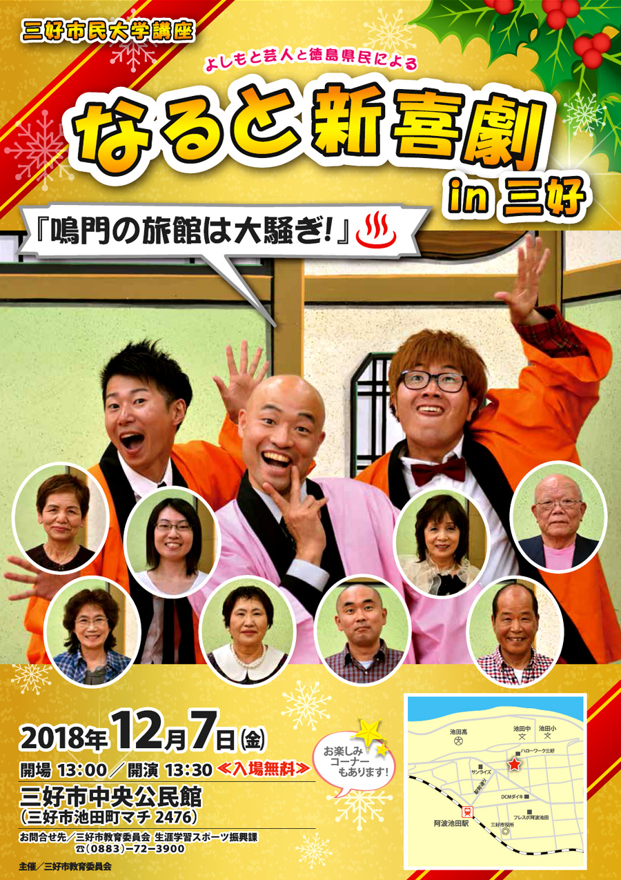 徳島県三好市 三好市中央公民館 にて なると新喜劇 in 三好 が開催されます。