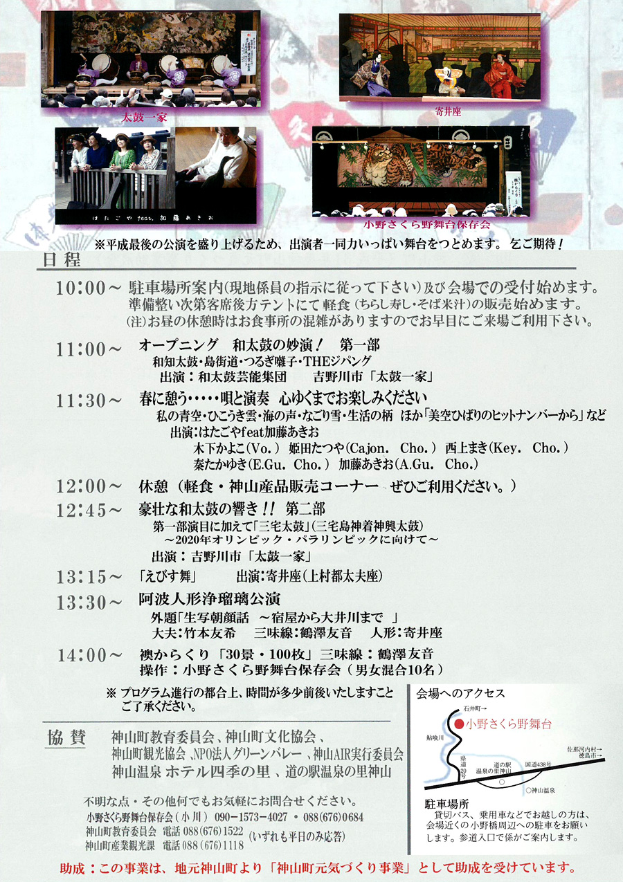 徳島県名西郡神山町 で 小野さくら野舞台 第12回春の定期公演 が開催されます。