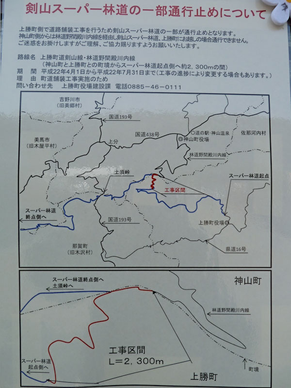 2010年 徳島県 剣山スーパー林道 一部通行止め について ご案内。