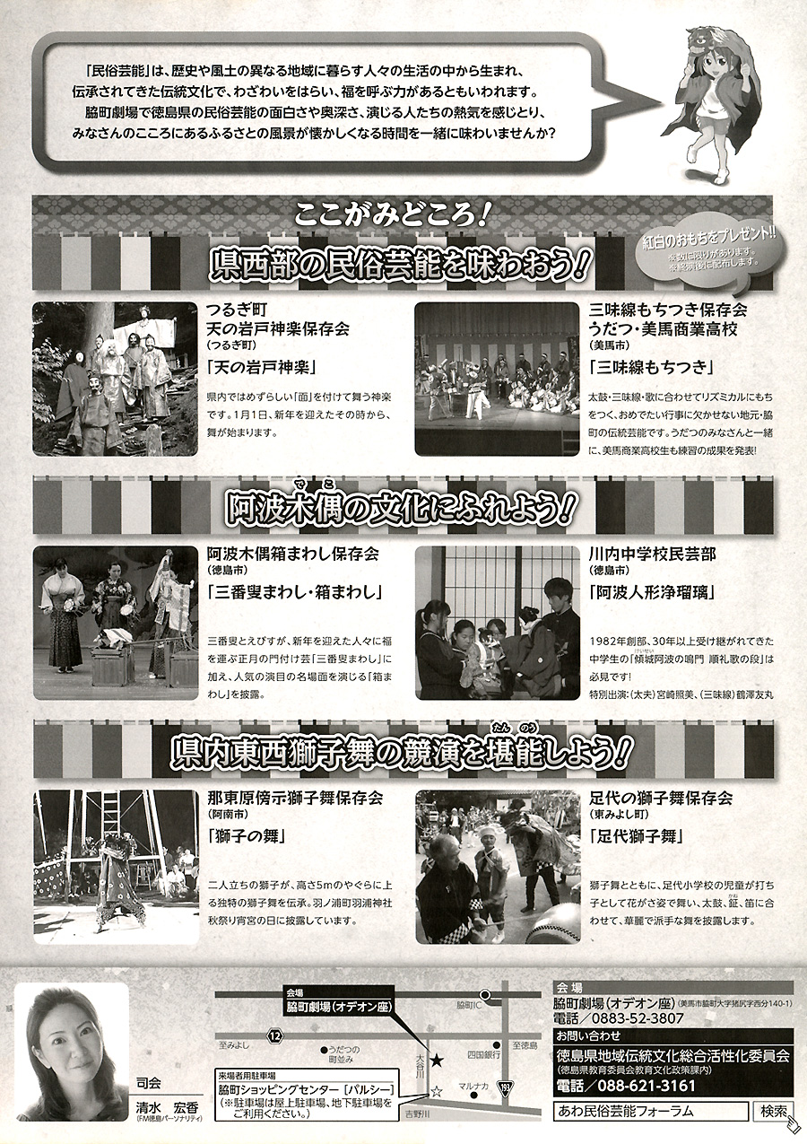 開催されます。 主催 徳島県地域伝統文化総合活性化委員会 。 入場無料。
