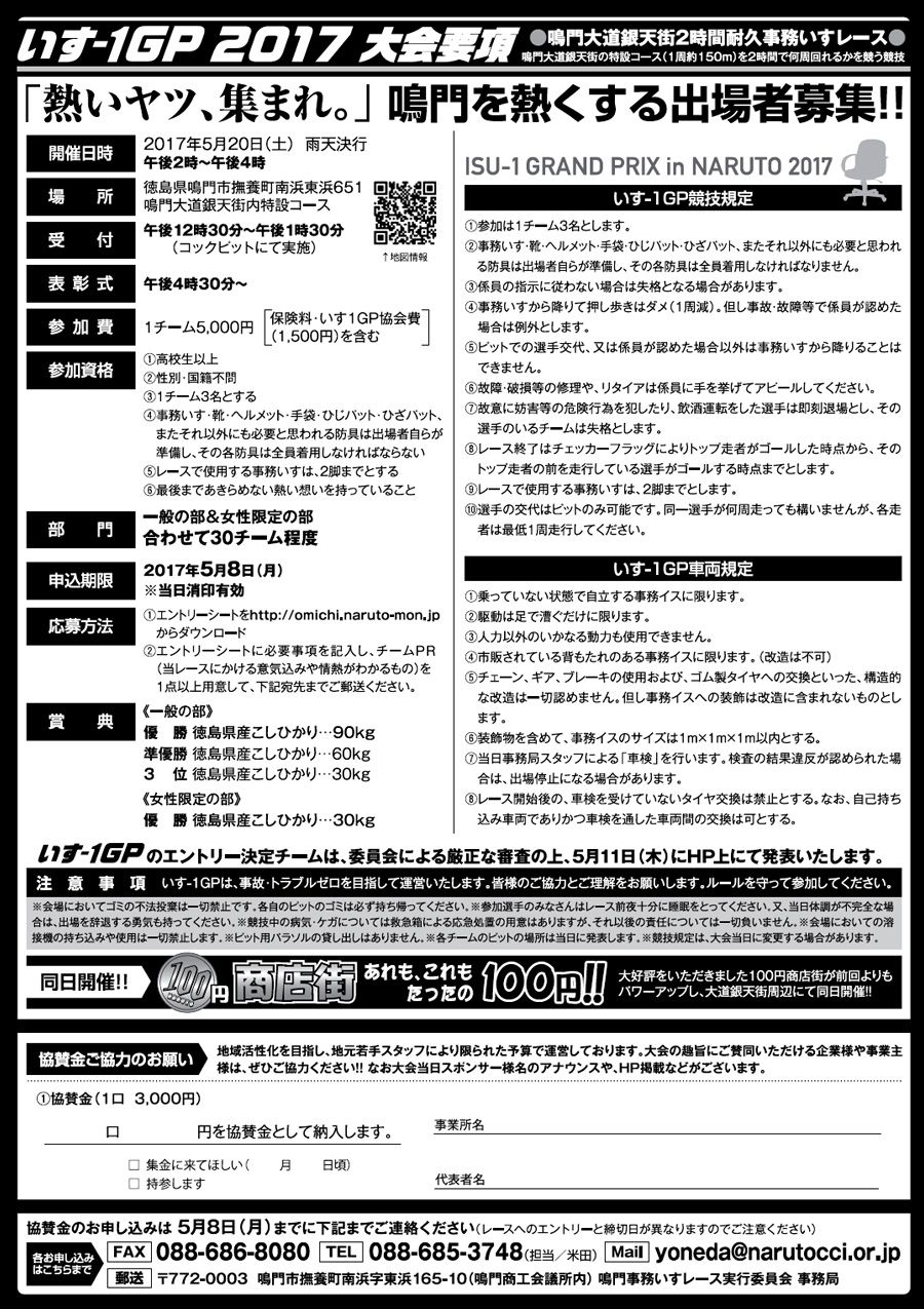いす−1GP に関する情報は、 鳴門大道銀天街 HP情報 を、ご参照下さい。