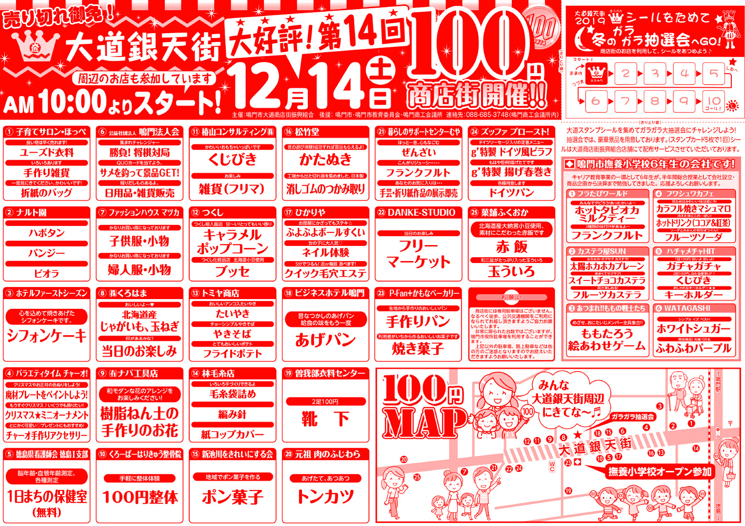 徳島県鳴門市 にある 商店街 大道銀天街 で 100円商店街 が開催されます。