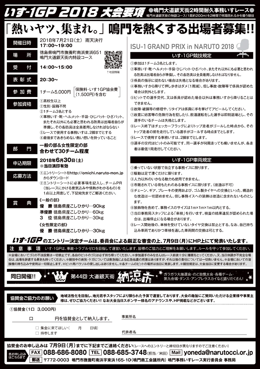 熱いヤツ、集まれ。 鳴門を熱くする いす−1GP 出場者を、募集しています。
