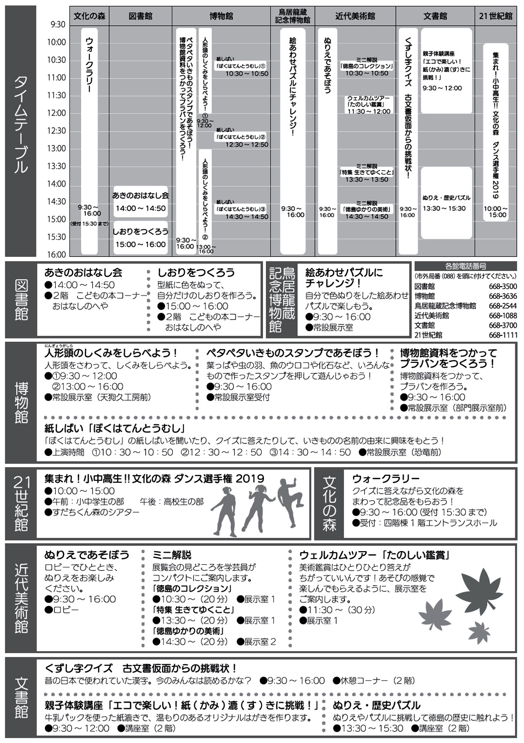 文化の森 にある 各施設 が いろんな イベント を 開催します。
