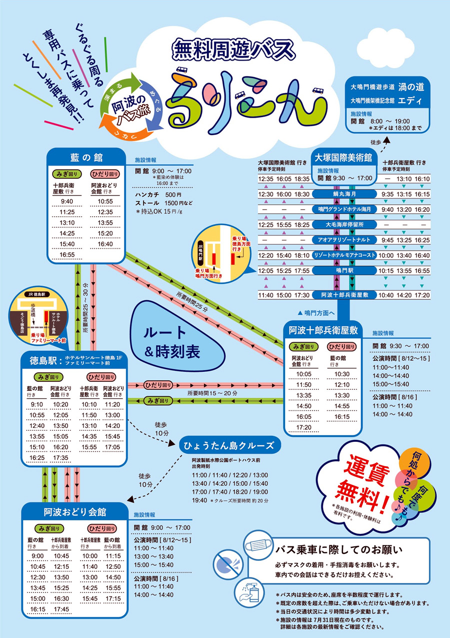 徳島県徳島市 板野郡藍住町 鳴門市 各施設 へ 阿波のバス旅 るりこん 無料周遊バス を