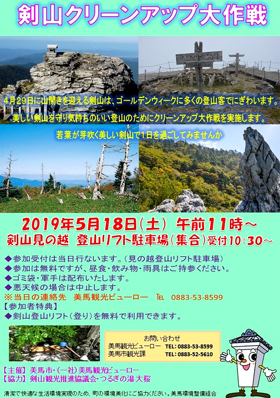 徳島県美馬市 と 美馬観光ビューロー が 剣山クリーンアップ大作戦 を