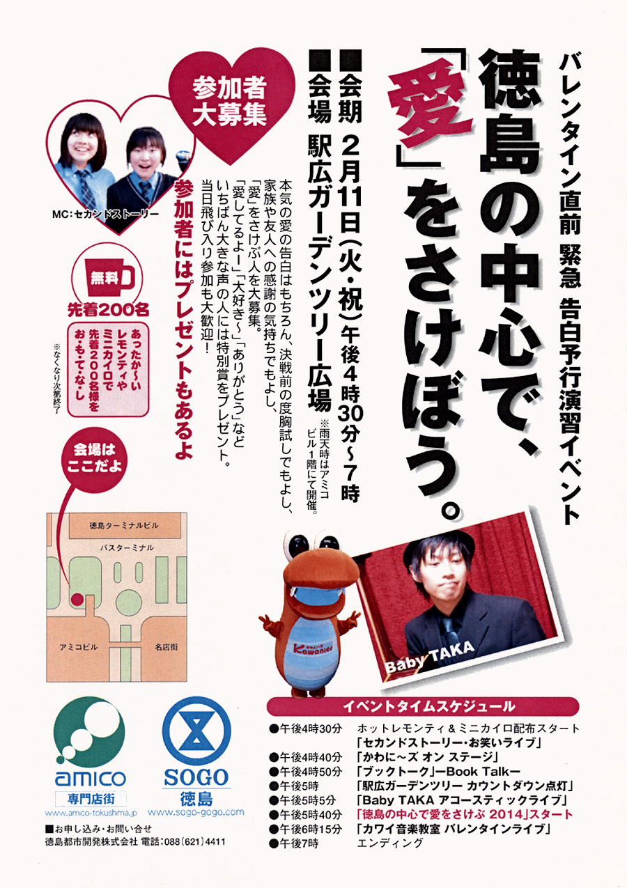 バレンタイン直前 緊急 愛の告白予行演習イベント 徳島の中心で、愛をさけぶ が
