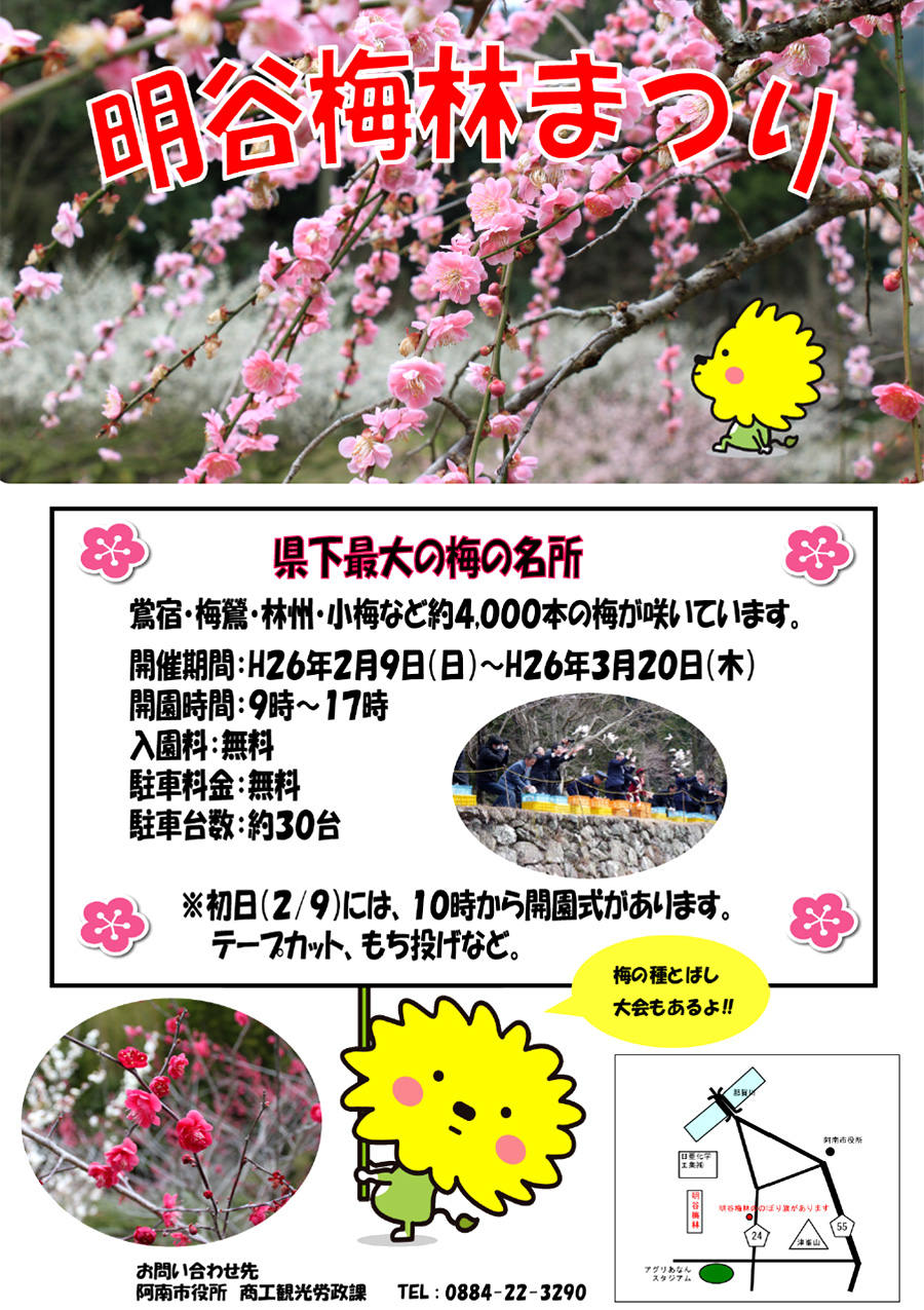 主催 梅の郷 明谷梅林 問合せ先 阿南市商工観光労政課