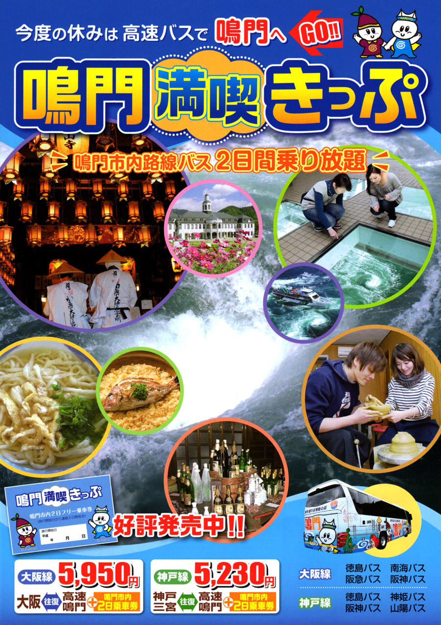 大阪 神戸 から 高速バス で 鳴門へ GO!! 鳴門満喫きっぷ