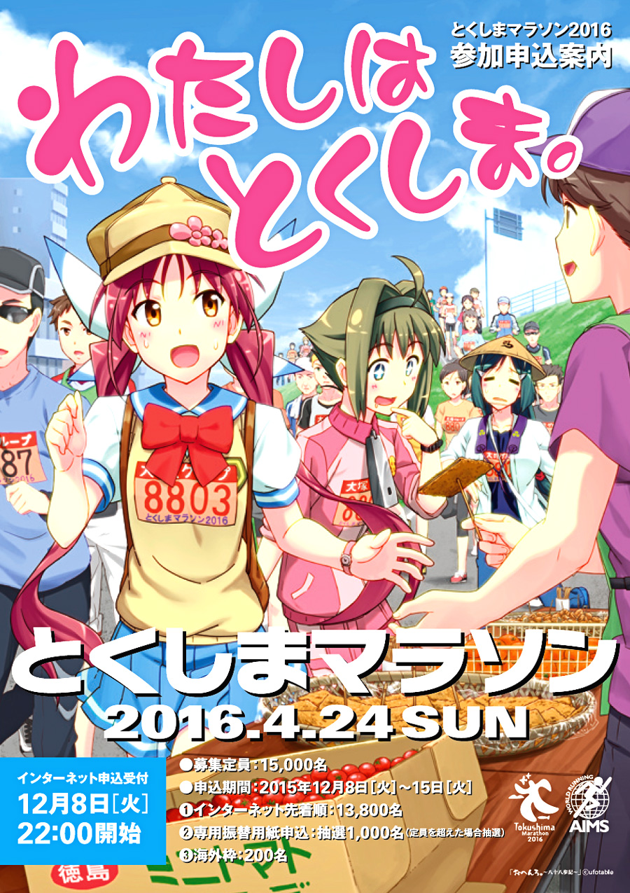 とくしまマラソン 2016 参加申込受付 が 2015年12月8日から 開始します。