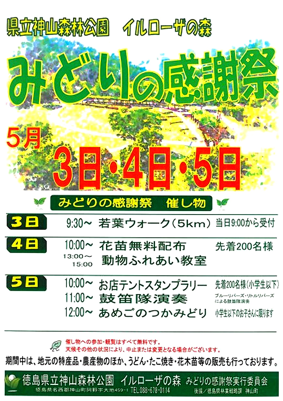 みどりの感謝祭 期間中、神山産特産品、農産物、うどん、たこ焼き、花木苗 など