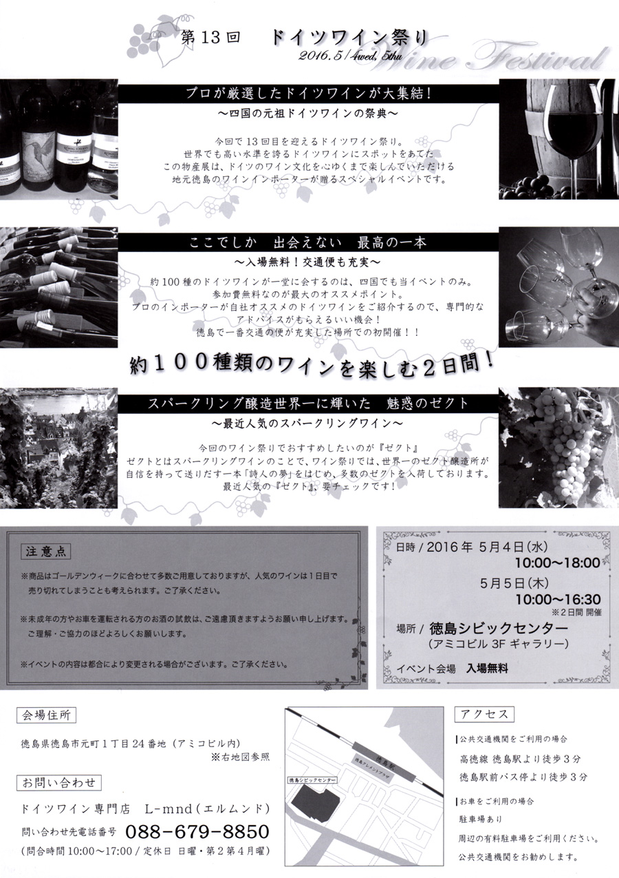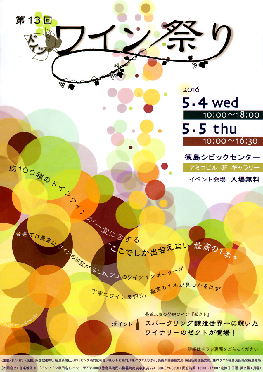 徳島県徳島市 シビックセンター にて 第13回 ドイツワイン祭り が 開催されます。