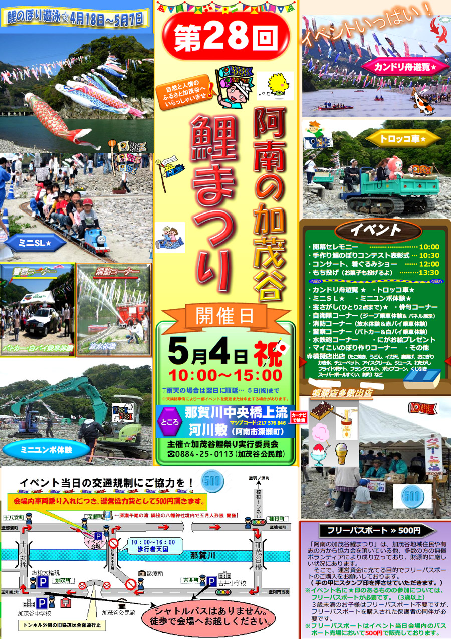 徳島県阿南市 那賀川中央橋 上流 河川敷 にて 第28回 阿南の加茂谷鯉まつり が