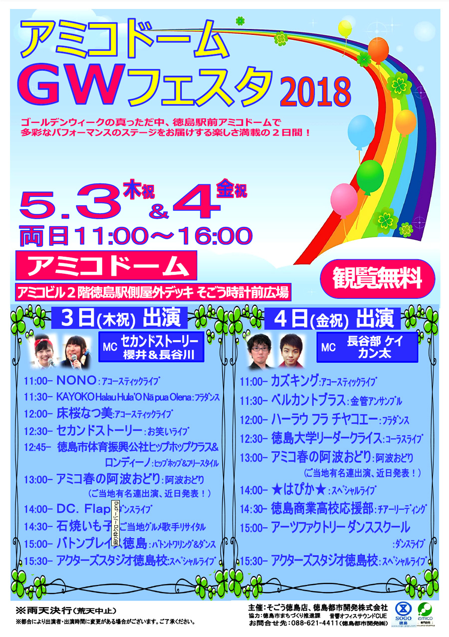 ゴールデンウィーク GW の 真っただ中、徳島駅前アミコドームで