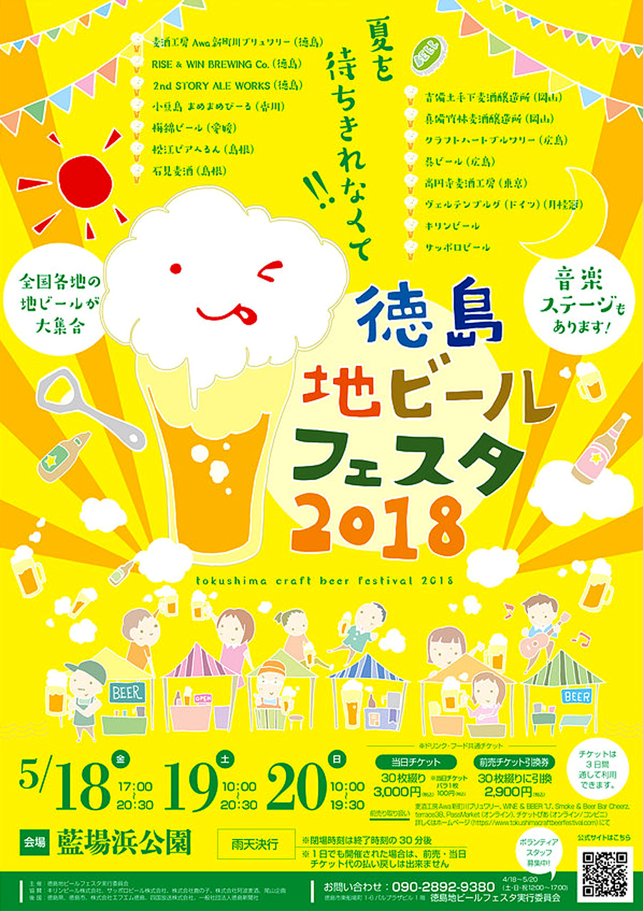 詳細は 徳島地ビールフェスタ 2018 HP情報 を ご参照下さい。