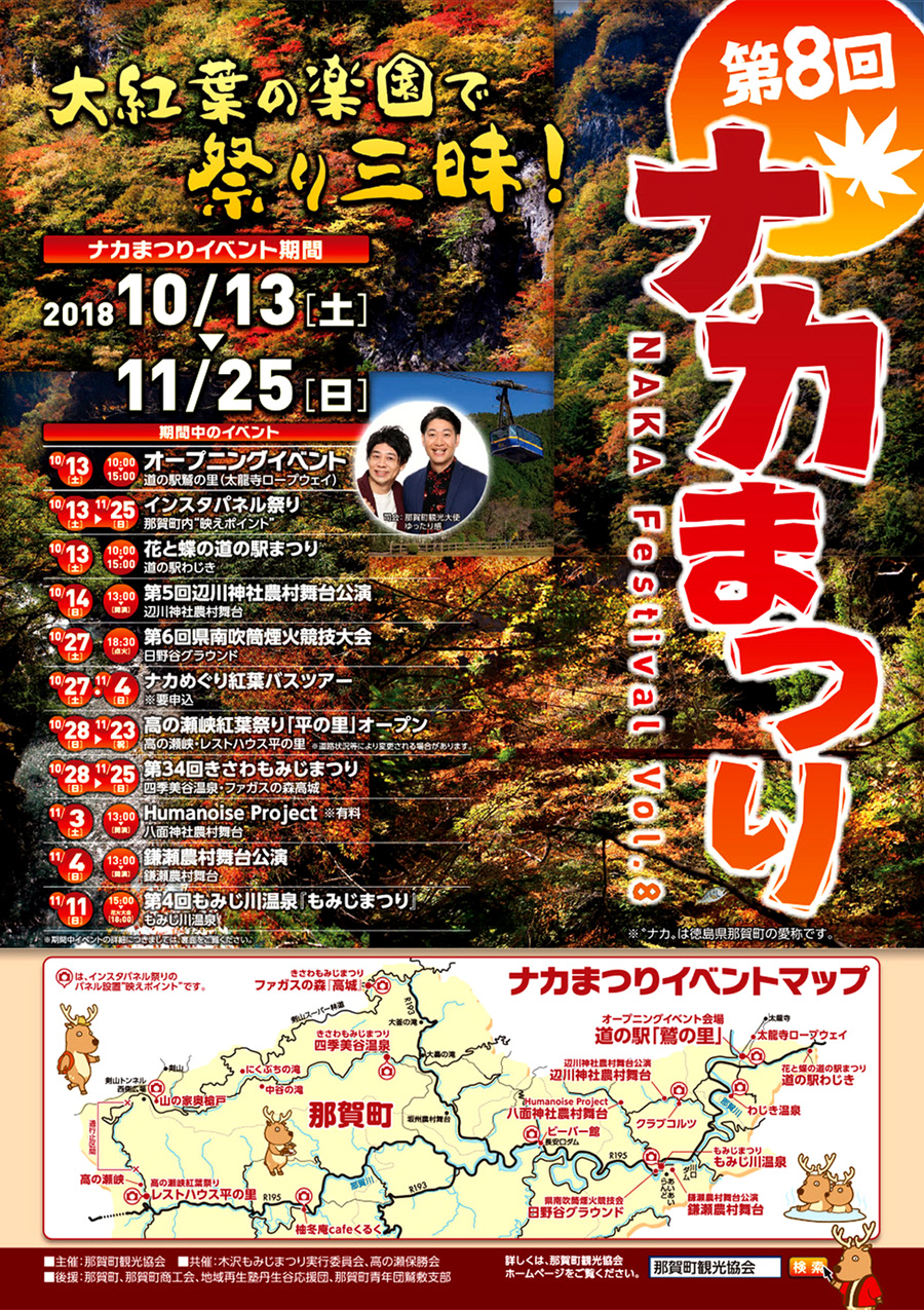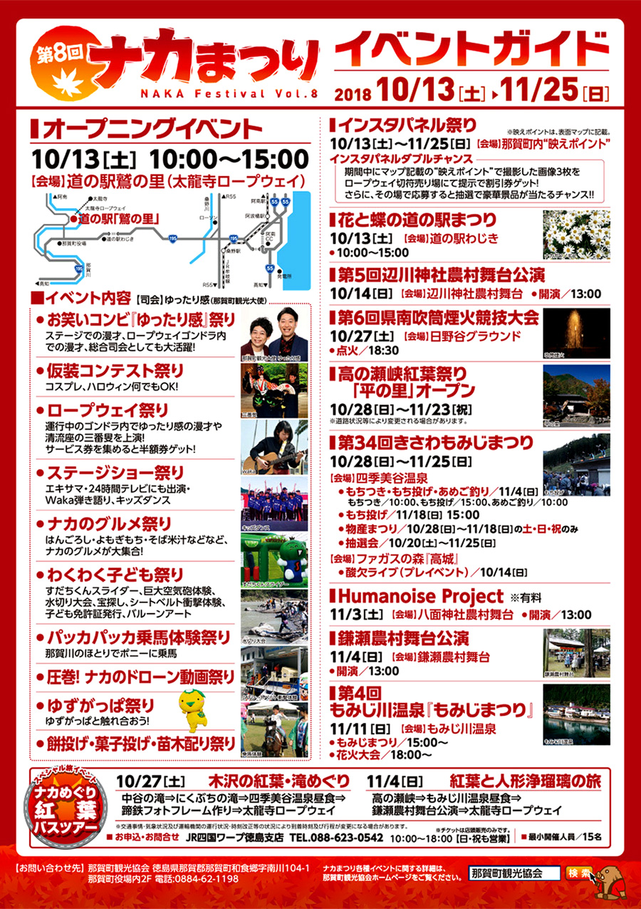 徳島県那賀郡那賀町 各所 にて 第8回 ナカまつり 秋イベント が開催されます。