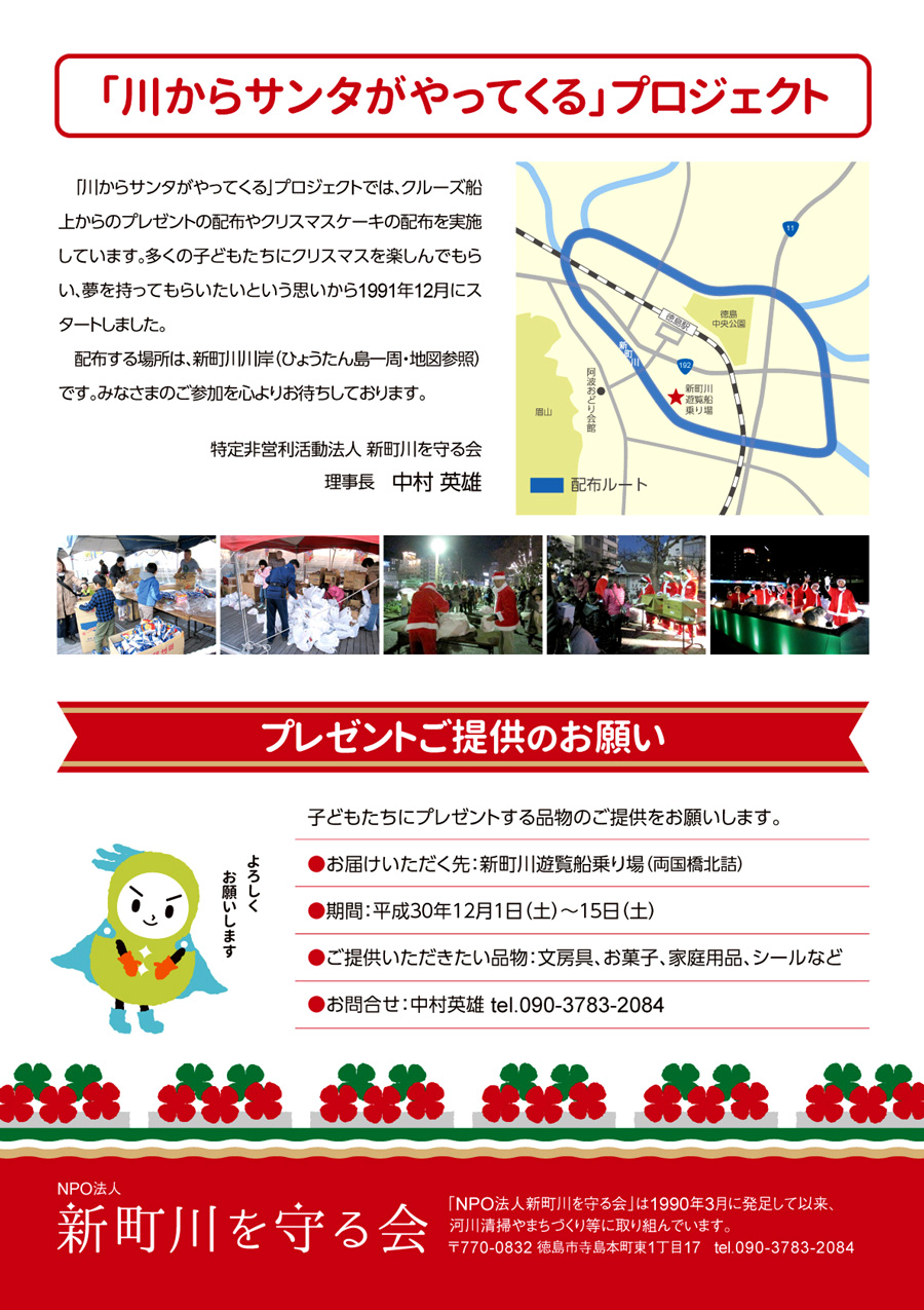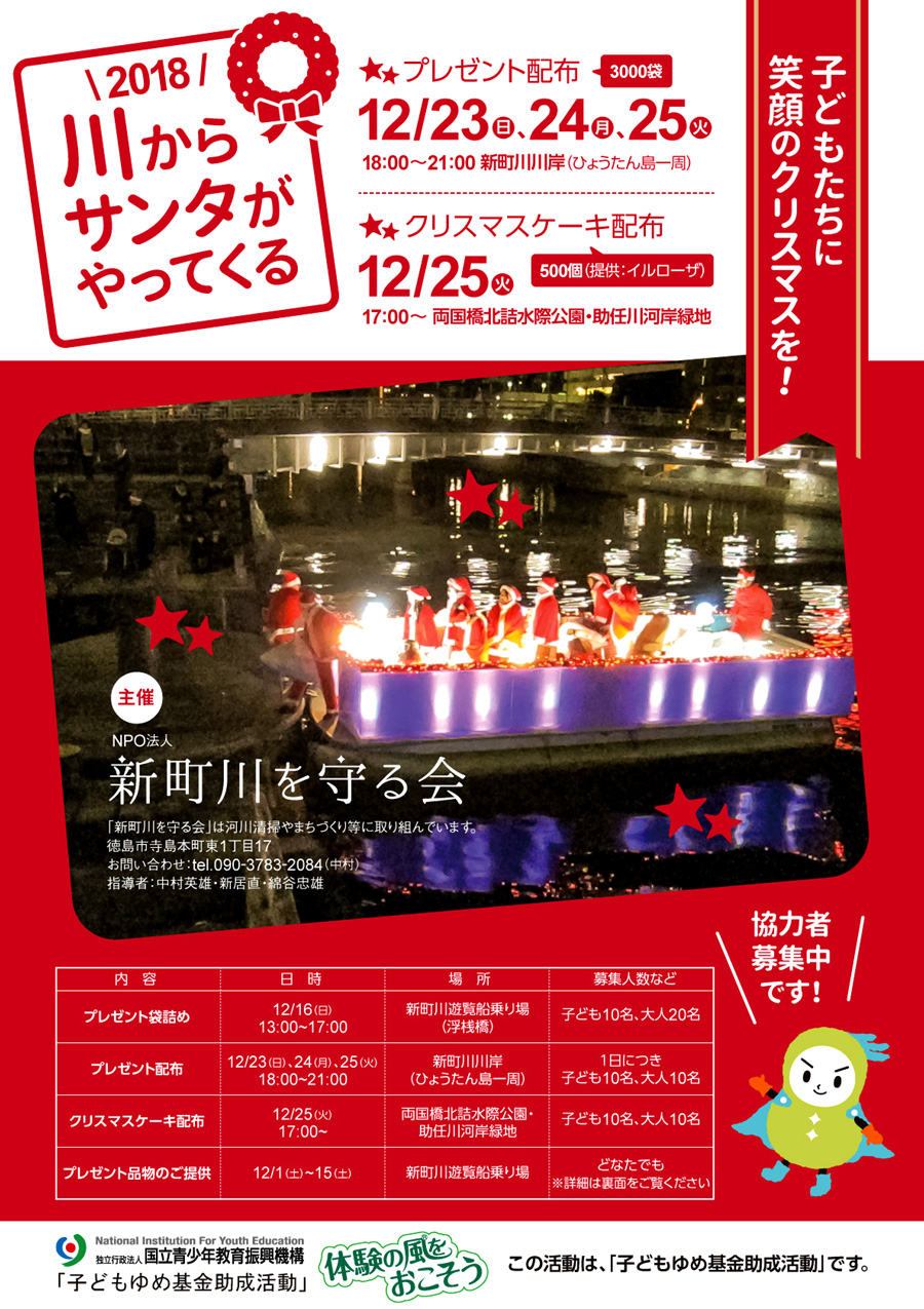 徳島県徳島市 川サンタ 川からサンタがやってくる 2018 が 開催されます。