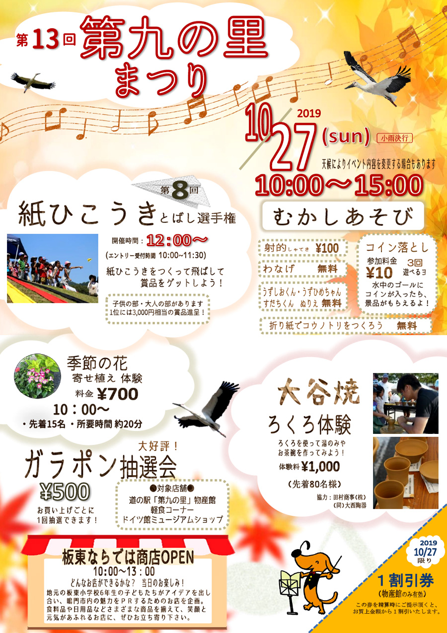 事前に、 道の駅 第九の里 第九の里まつり イベント案内 チラシ を入手すると、