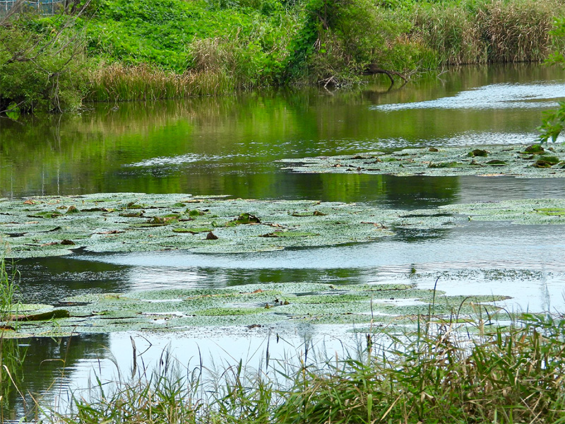 徳島県鳴門市大麻町姫田 にある 中池 に 鬼蓮 オニバス を見に行ってきました。
