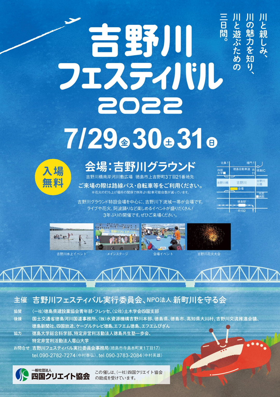 吉野川フェスティバル 2022 が 開催されます。 入場無料。
