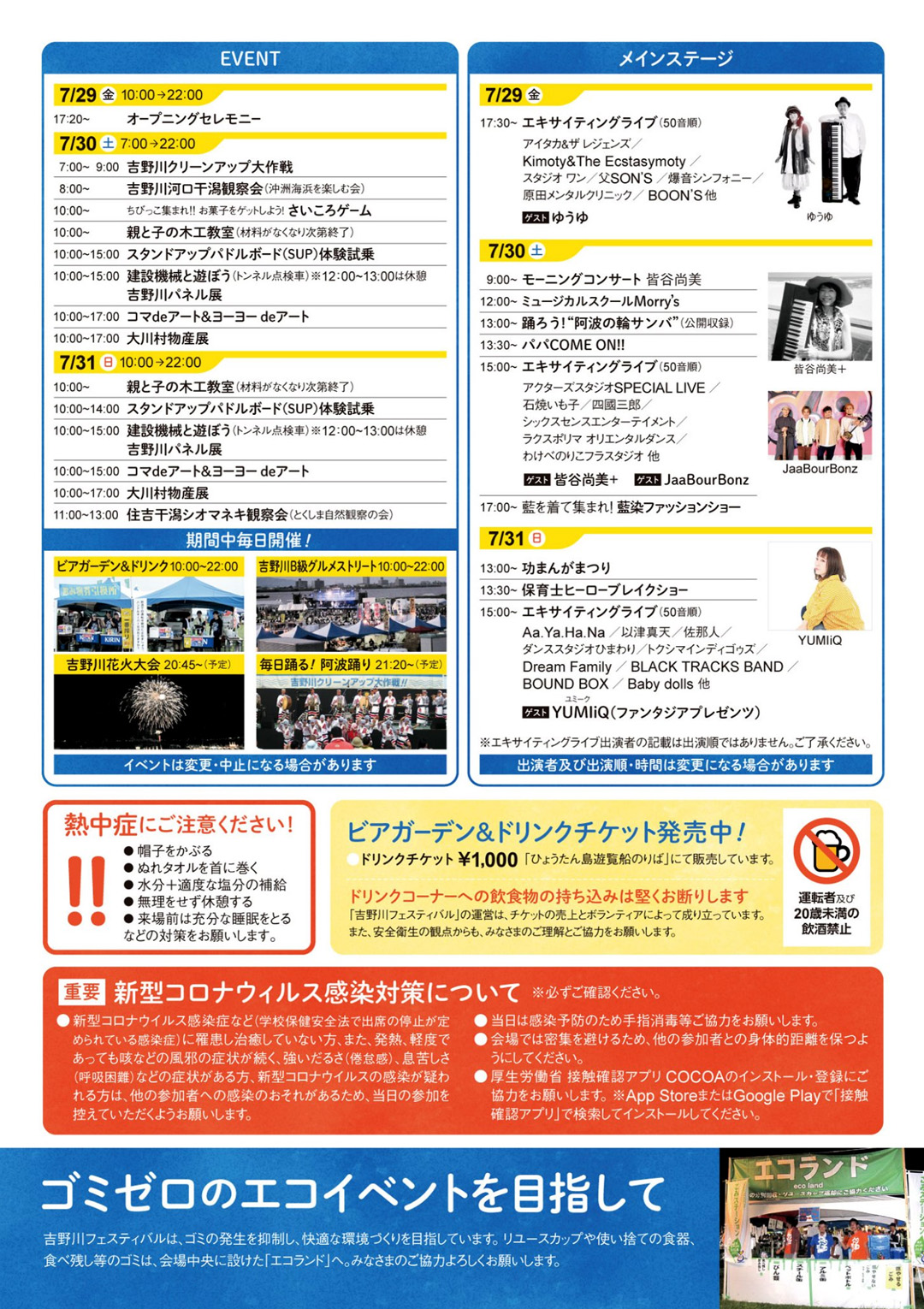 詳細は FB HP など、 吉野川フェスティバル 情報を、ご参考にして下さい。