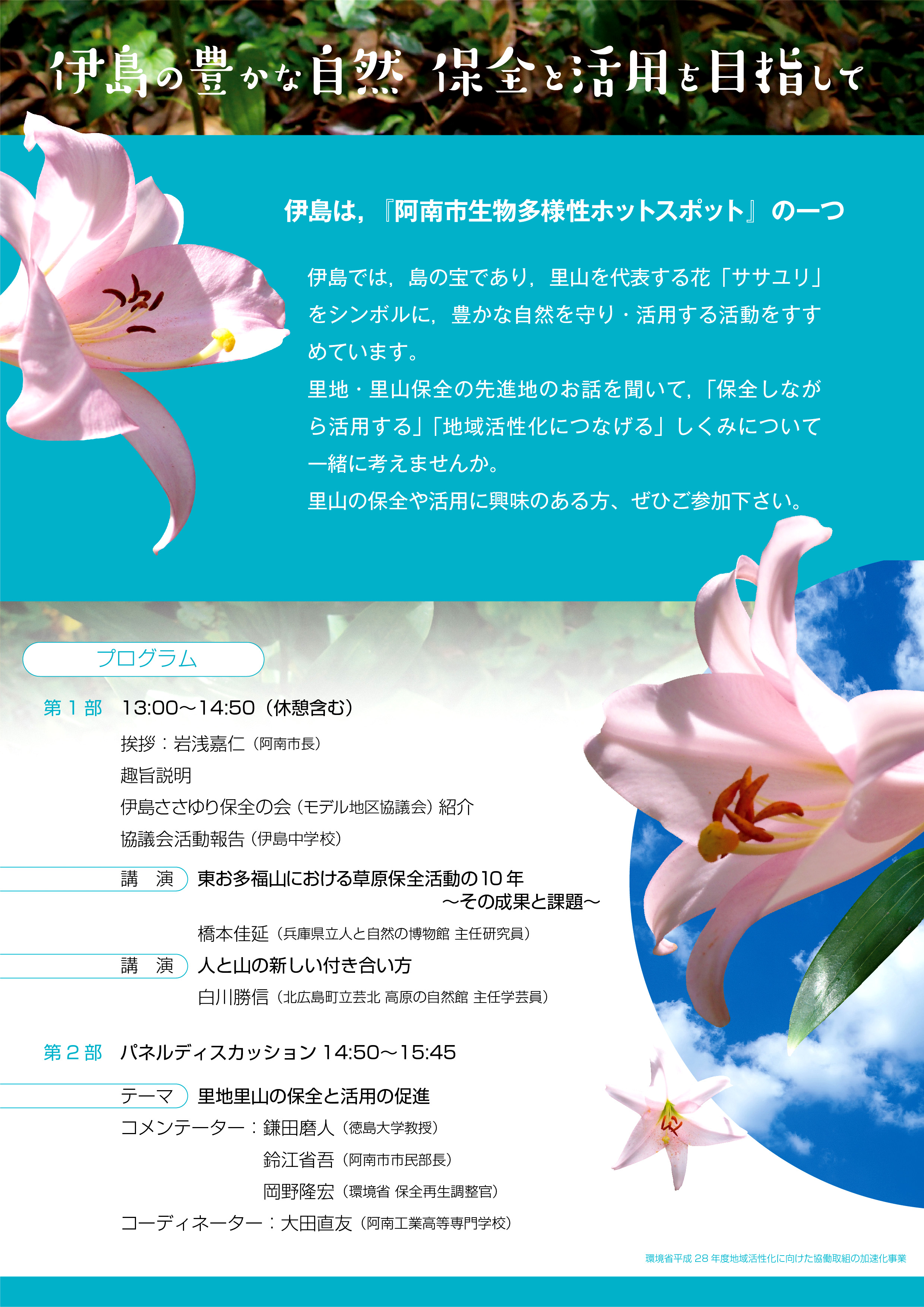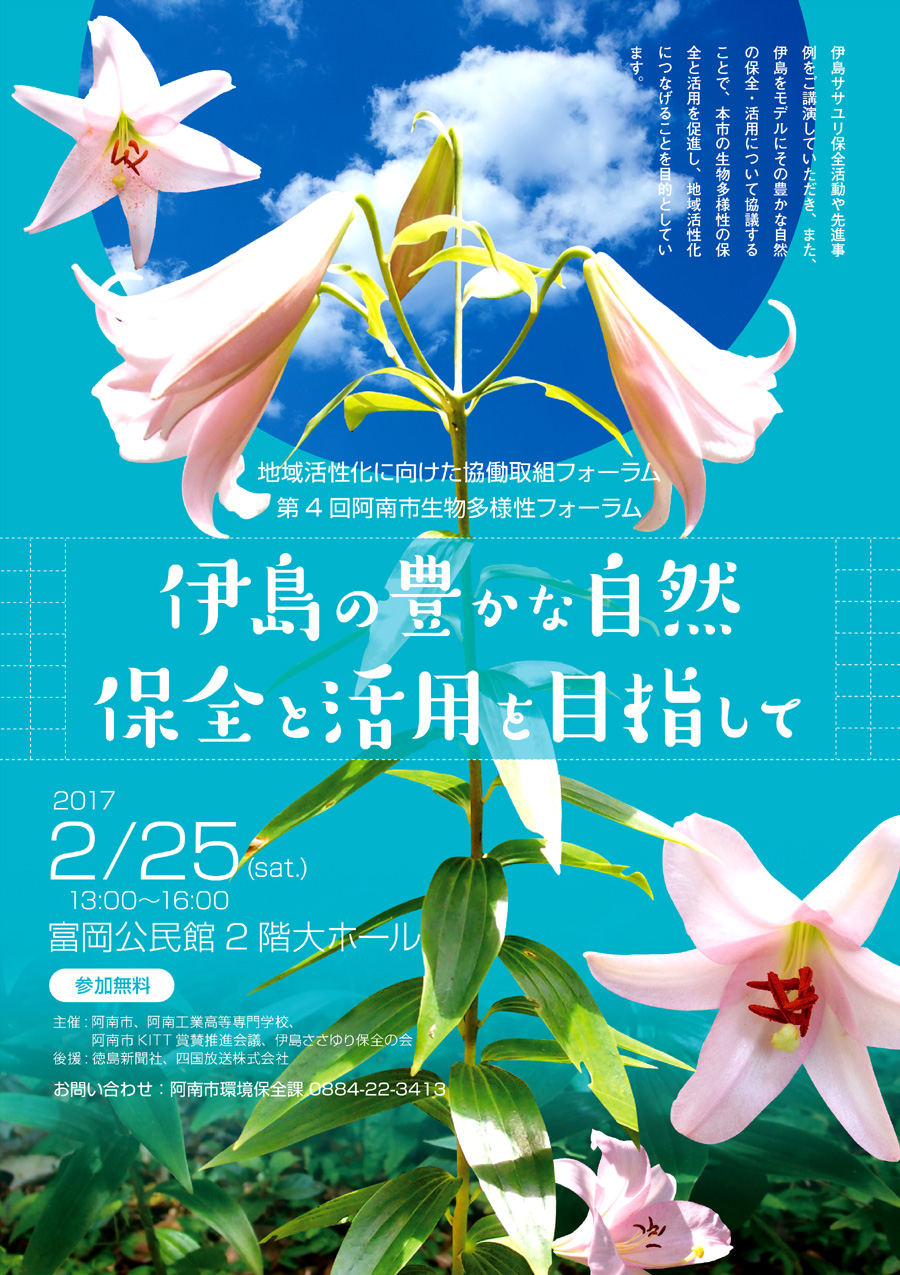 主催 阿南市 阿南工業高等専門学校 阿南市KITT賞賛推進会議 伊島ささゆり保全の会