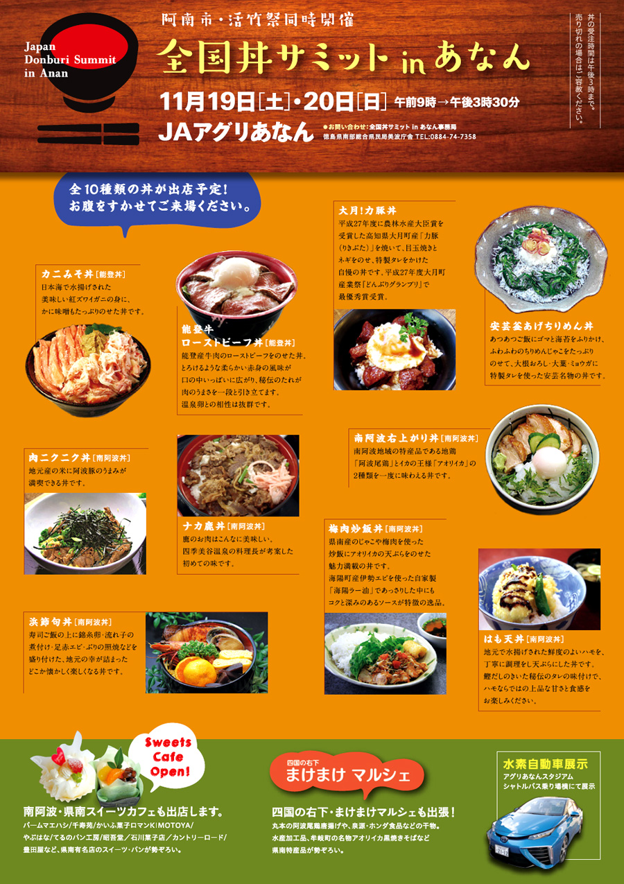 全国丼サミット in あなん 、 四国の右下 まけまけマルシェ、県南スイーツ など、