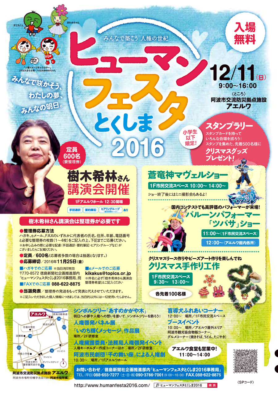 ヒューマンフェスタ とくしま 2016 が開催されます。 入場無料。