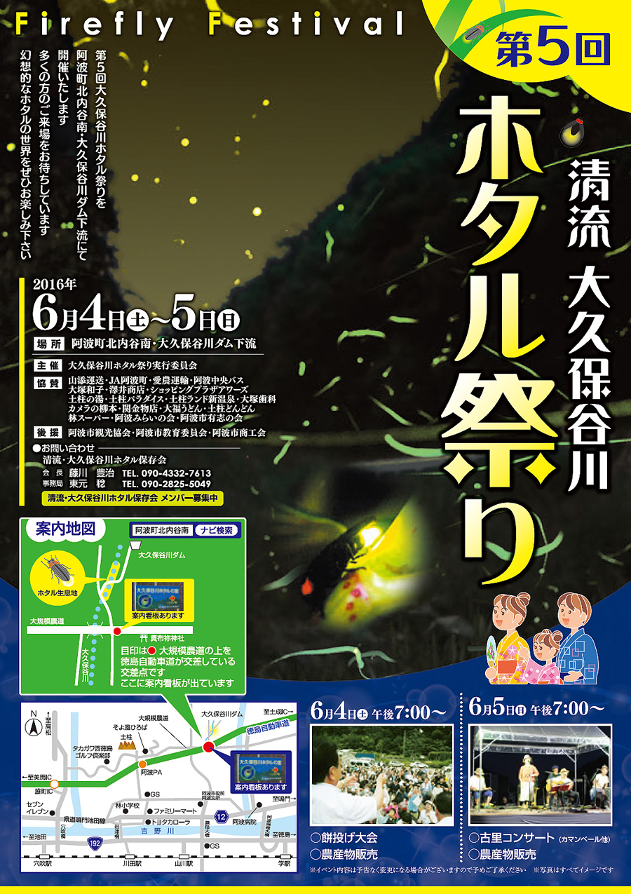 徳島県阿波市阿波町北内谷南 大久保谷ダム下流 周辺で 大久保谷川ホタル祭り が