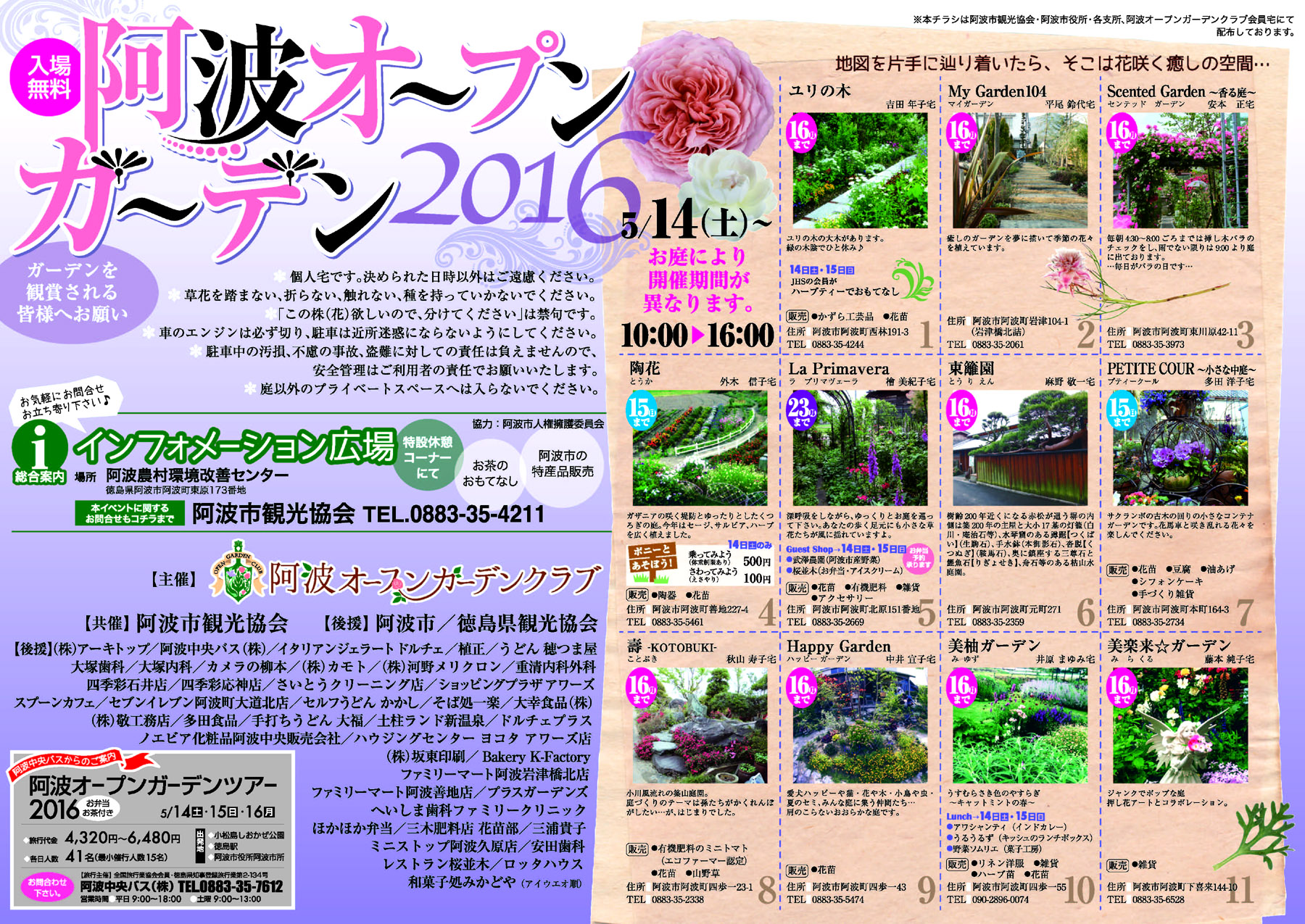 阿波オープンガーデン 2016 開催 情報も、ご参考にして下さい。