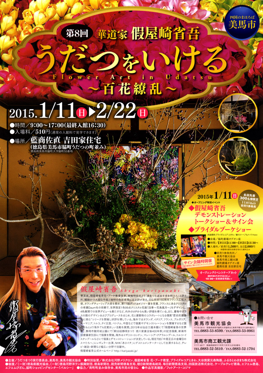 徳島県美馬市脇町 うだつの町並み にて、天才華道家 假屋崎省吾さん の 華道展
