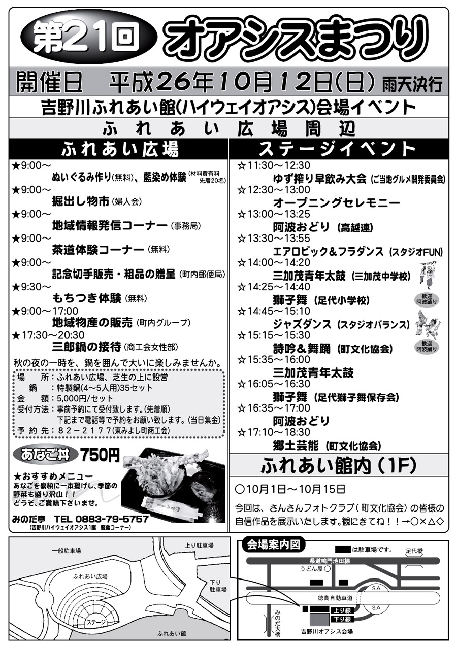 主催 オアシスまつり実行委員会 共催 東みよし町 吉野川オアシス株式会社