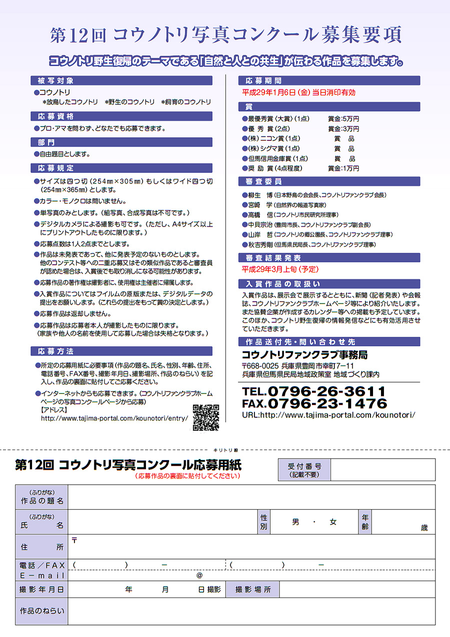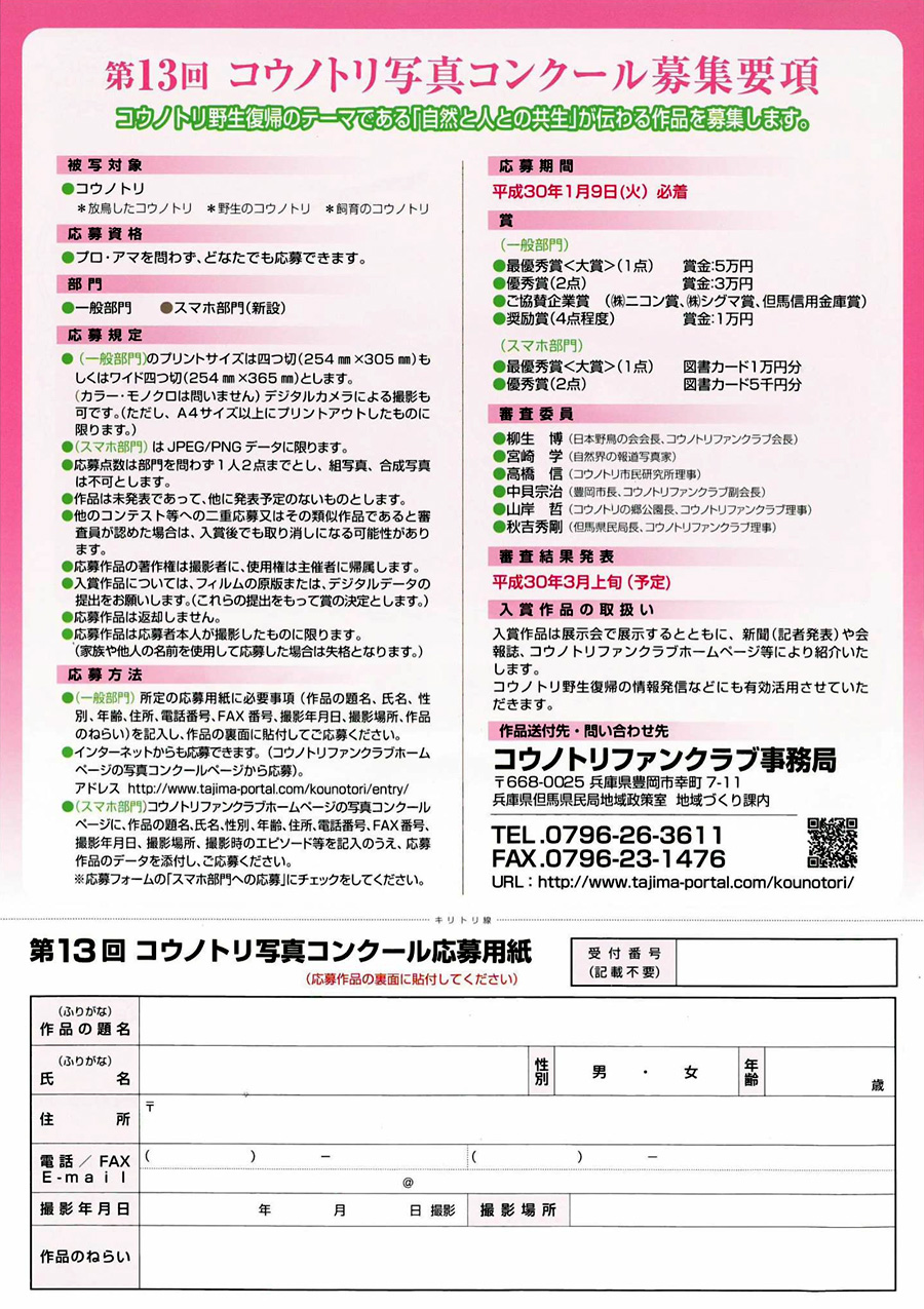 応募に関する詳細は、コウノトリファンクラブ HP情報を、ご参考にして下さい。