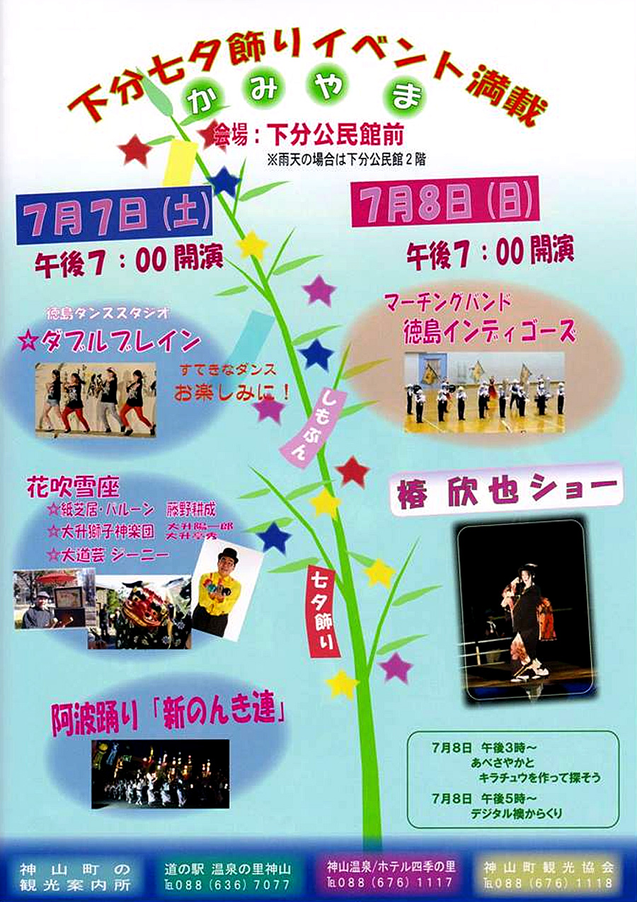 徳島県名西郡神山町 下分公民館 前と その周辺 で 下分七夕飾り が開催されます。