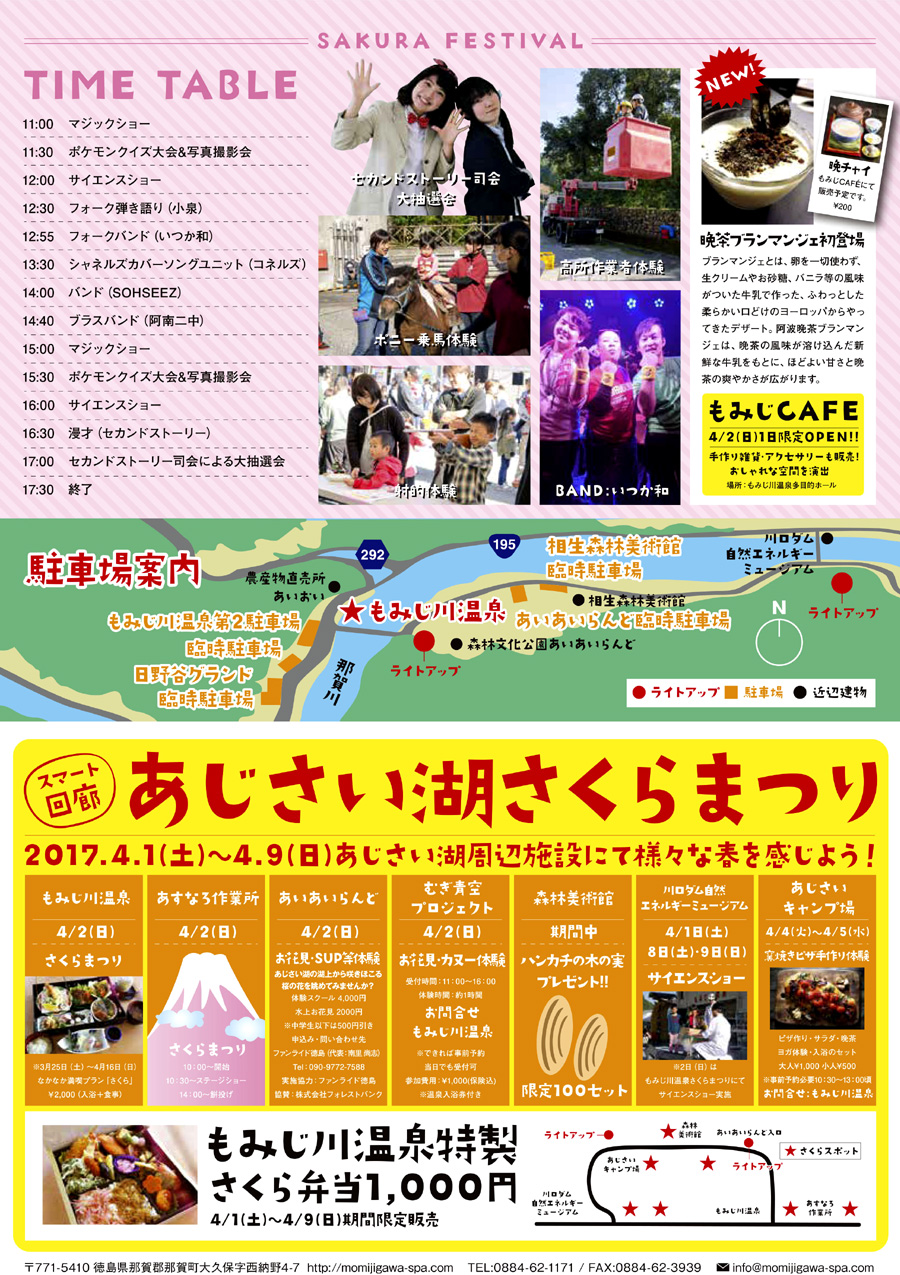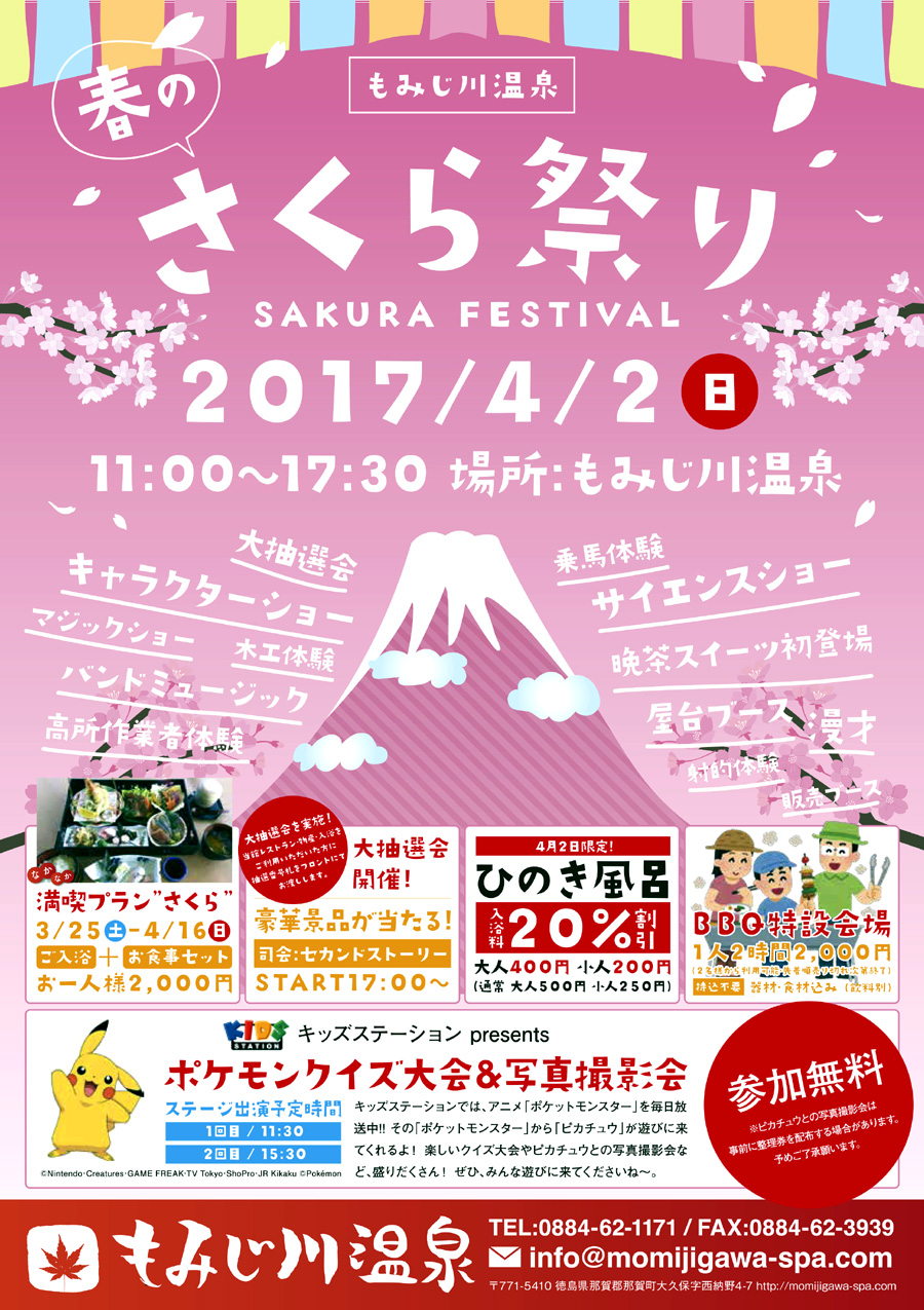 徳島県那賀郡那賀町大久保 にある もみじ川温泉 が 春のさくら祭り を開催します。