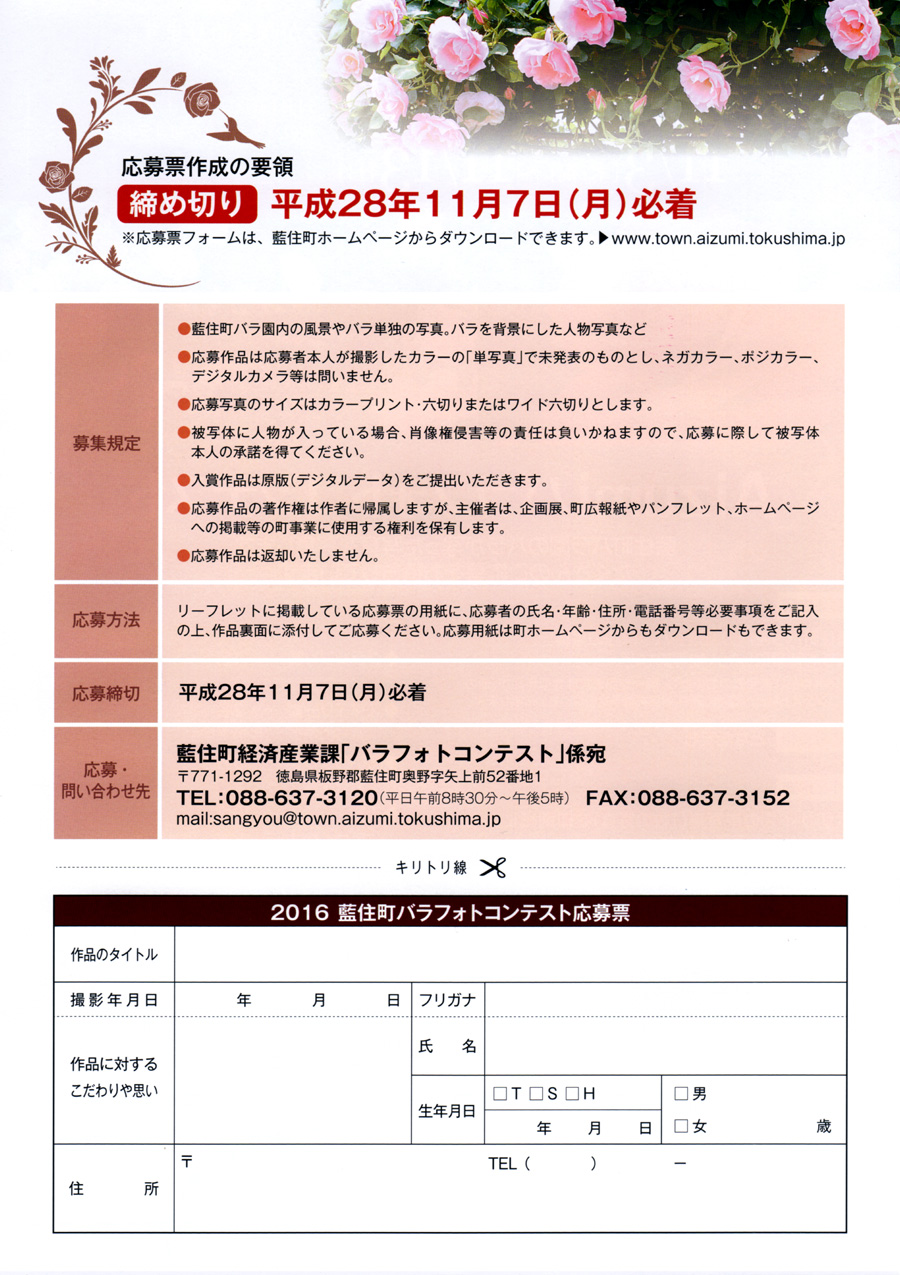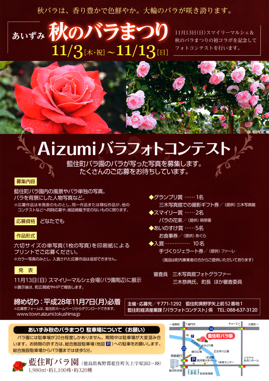 Aizumiバラフォトコンテスト 藍住町バラ園 の バラが写った写真を募集します。