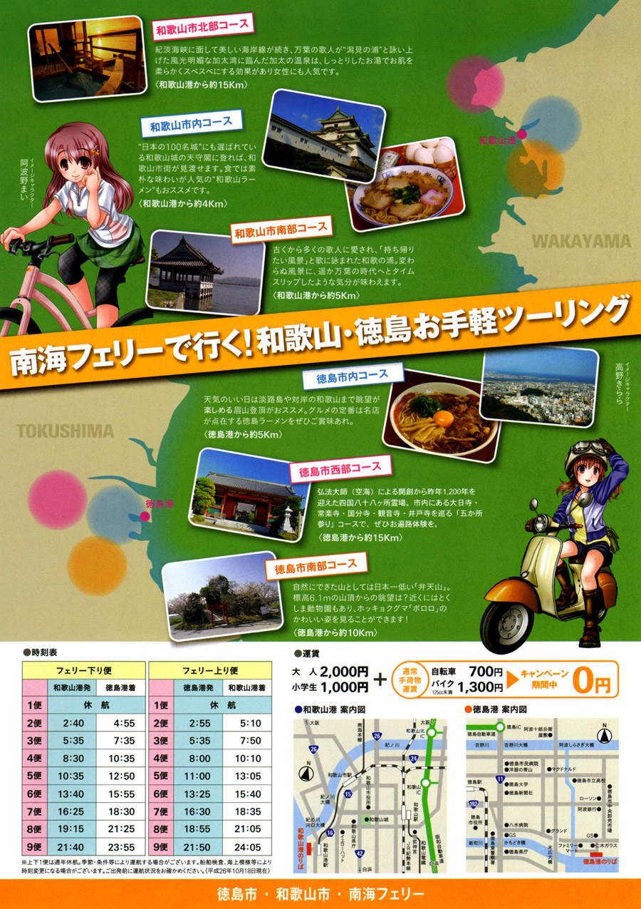 南海フェリー 徳島和歌山航路 自転車&バイク 無料キャンペーン